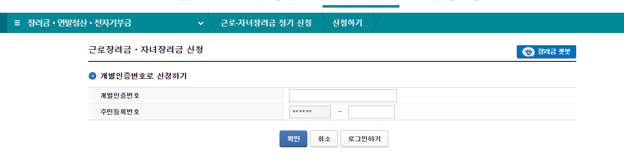 여기에서 개별인증번호란, 개인정보 보호를 위한 인증절차를 간소화하기 위해 장려금 신청대상자에게 부여한 인증번호로 ARS혹은 국세청 홈택스(PC, 모바일앱)로 전자신청시 사용되는 번호를 말하는데요. 신청 대상자라면 국세청에서 근로자녀장려금 신청대상이라고 안내 문자가오는데, 그 안내 문자 안에 개별인증번호가 기재되어 있습니다. 그 개별인증번호와 주민등록번호를 입력하여 신청하여 주시면 되는데요, 신청에는 근로장려금과 자녀장려금 두 가지중에 선택을 하셔서 신청을 하셔야되고, 선택 방법에도 두 가지의 선택지가 있습니다.
