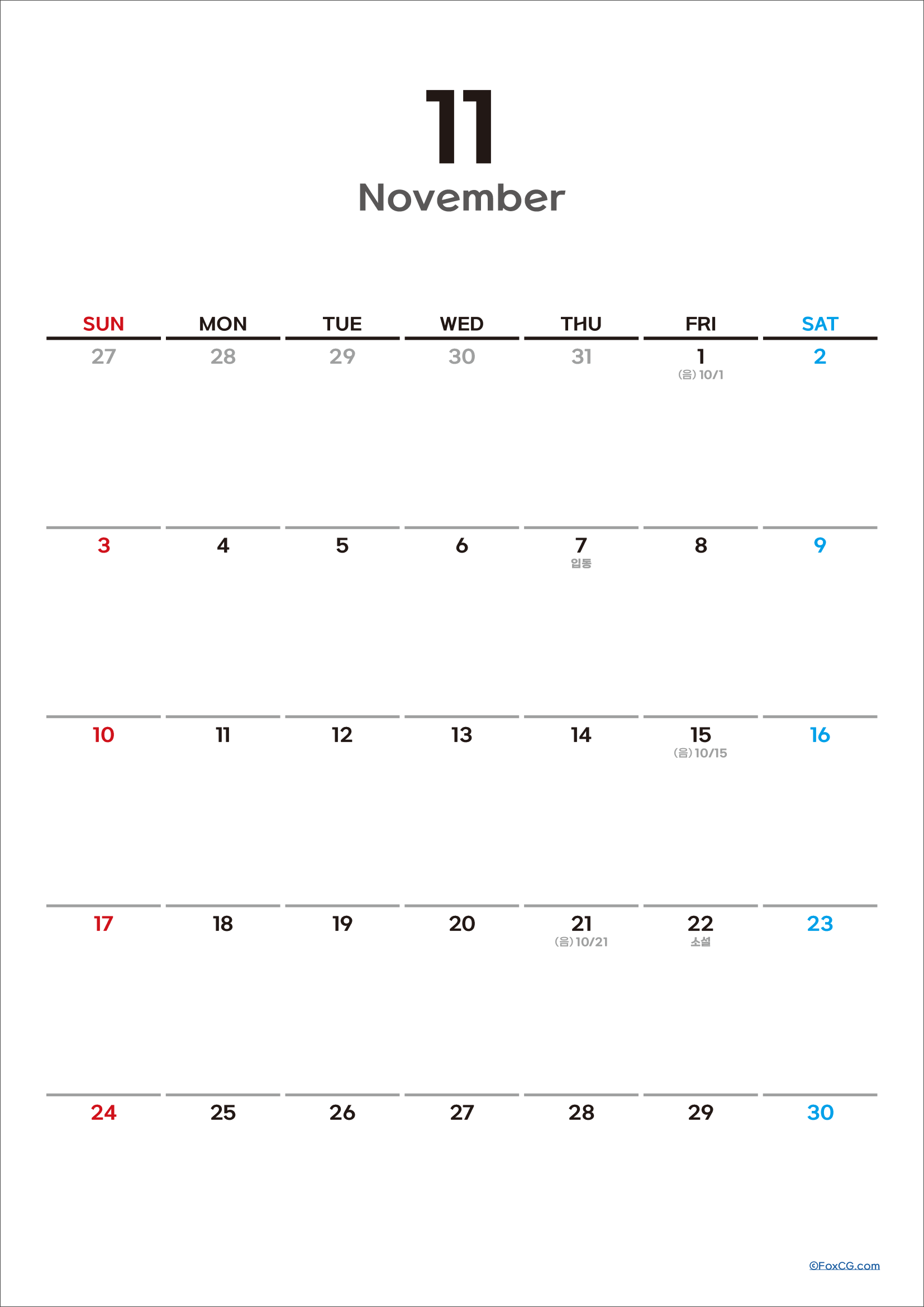 날이 갑자기 쌀쌀해 지면서 특히나 건강관리에 신경을 써야되는 달입니다. 아쉽게도 11월달에도 공휴일은 없습니다. 4일 "점자의 날", 5일 "소상공인의 날", 9일 "소방의 날", 11일은 "유엔참전용사 추모식"이 있기도 하면서, "농업인의 날"이자"보행자의 날"입니다. 17일 "순국선열의 날", 19일 "아동학대예방의 날", 22일 "김치의 날"과 같은 다양한 기념일들이 있어요. 14일은 또 오렌지데이 & 무비데이 (Orange & Movie Day)라고 하네요. 오렌지 쥬스를 함께 마시거나 영화를 본다고 합니다. 그간 받았던 스트레스를 액션영화와 함께 날려버리기도 하고, 가슴이 뭉클해지는 슬픈영화를 소중한 사람과 함께 보시는건 어떠세요?